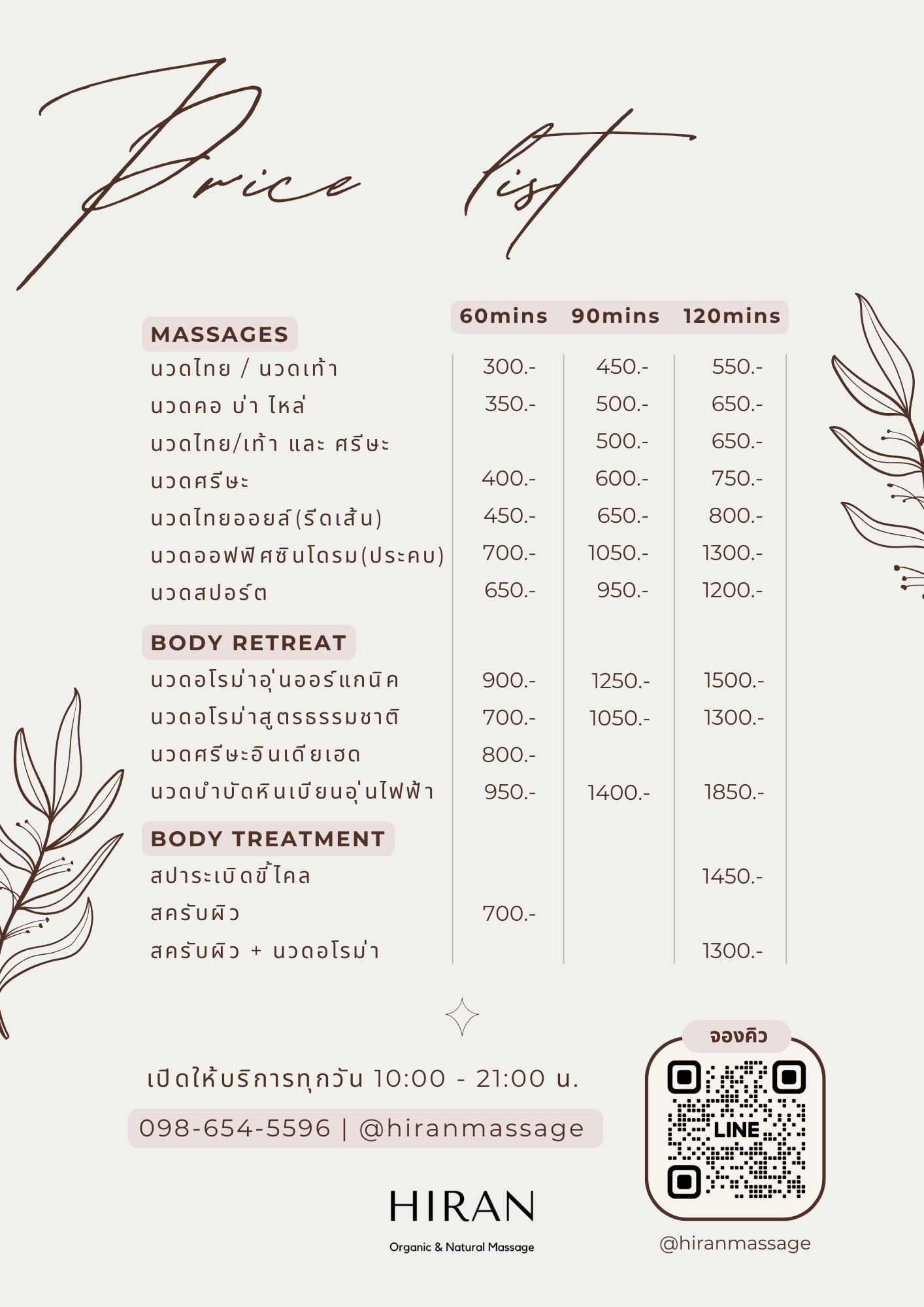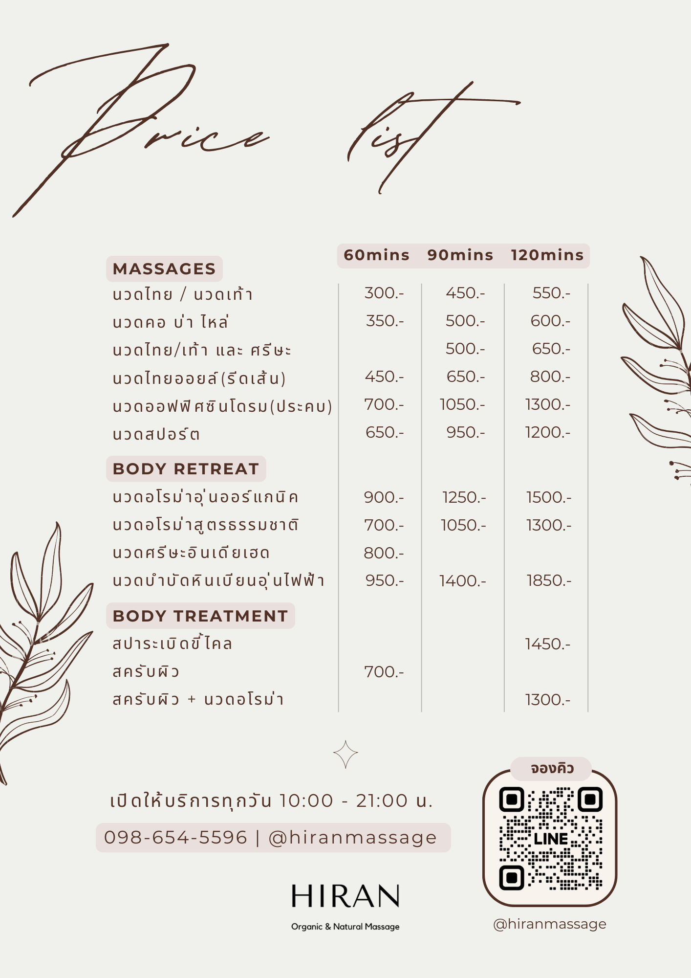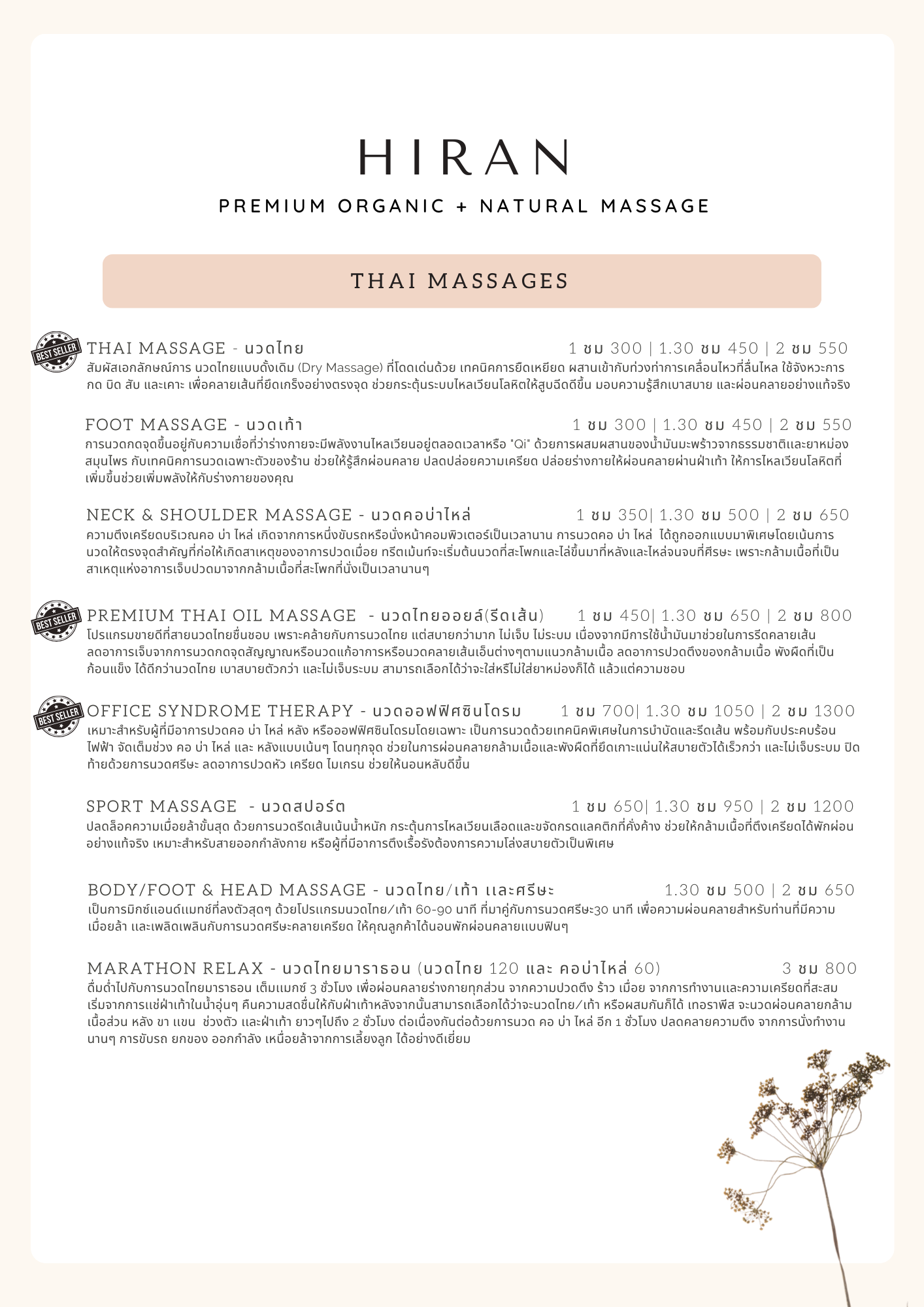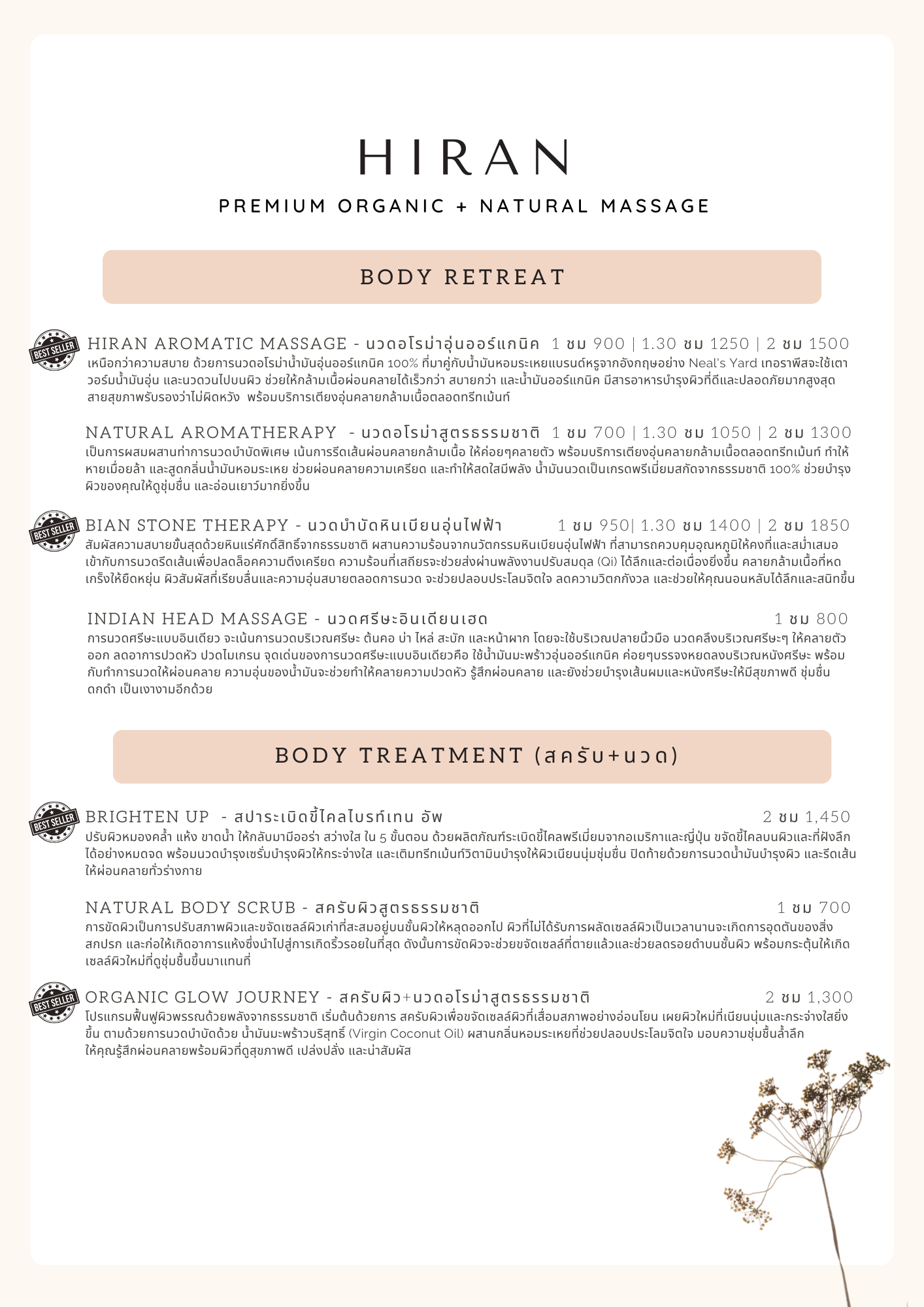 Spa menu